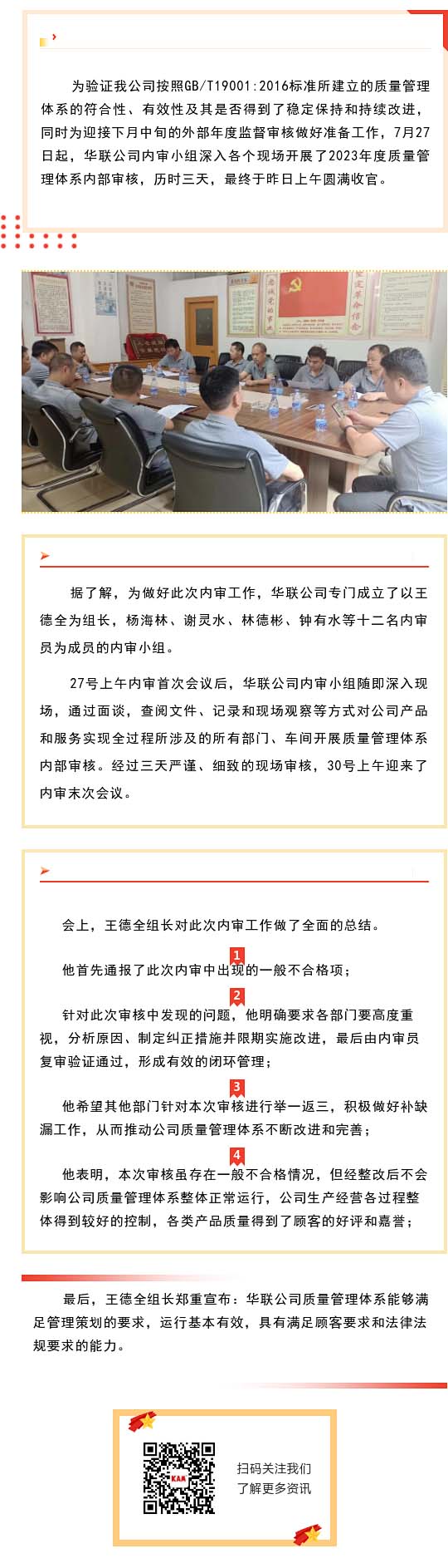 华联公司2023年度质量管理体系内审圆满收官